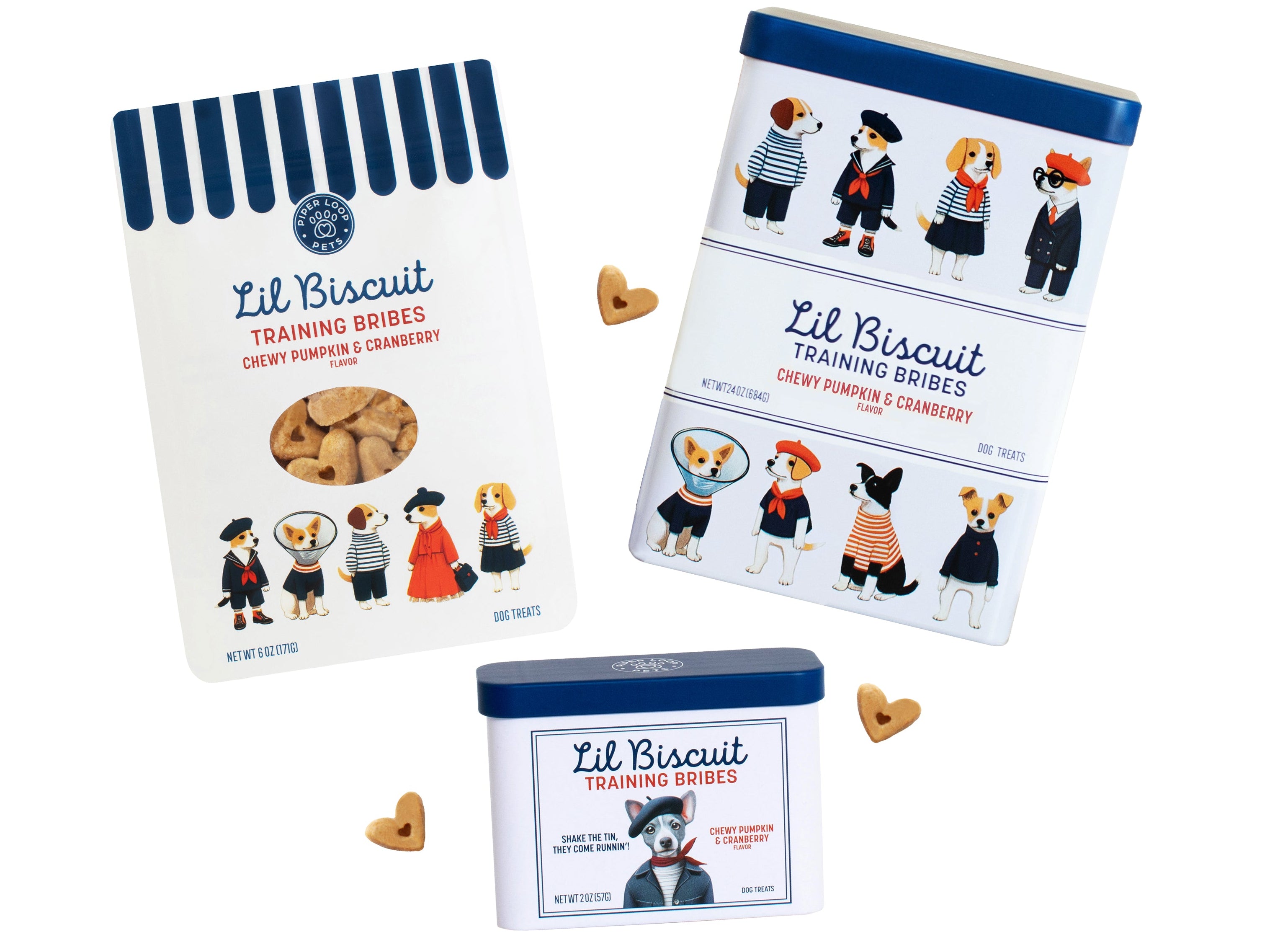 Inside our decorative tins, you'll find our signature chewy, heart-shaped dog treats — formulated by veterinarians for your dog’s health and happiness.