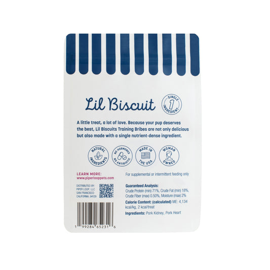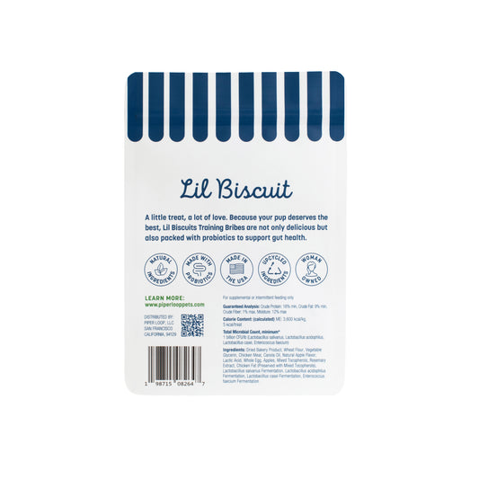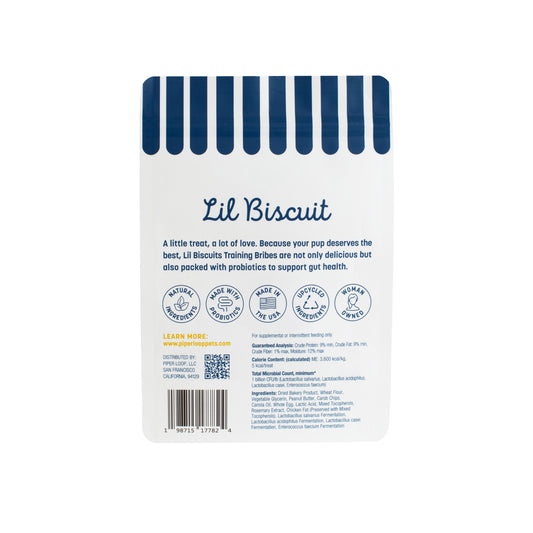 Treat your pup — and your home decor — to our Refillable Dog Treat Tin with Lil’ Biscuit Chewy Training Bribes. With a removable label (you're welcome!)