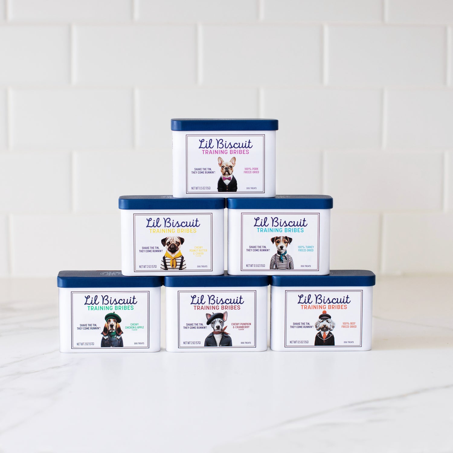 The result is a collection of high-value dog treats and design-forward tins that help dogs come running — and look good doing it.
