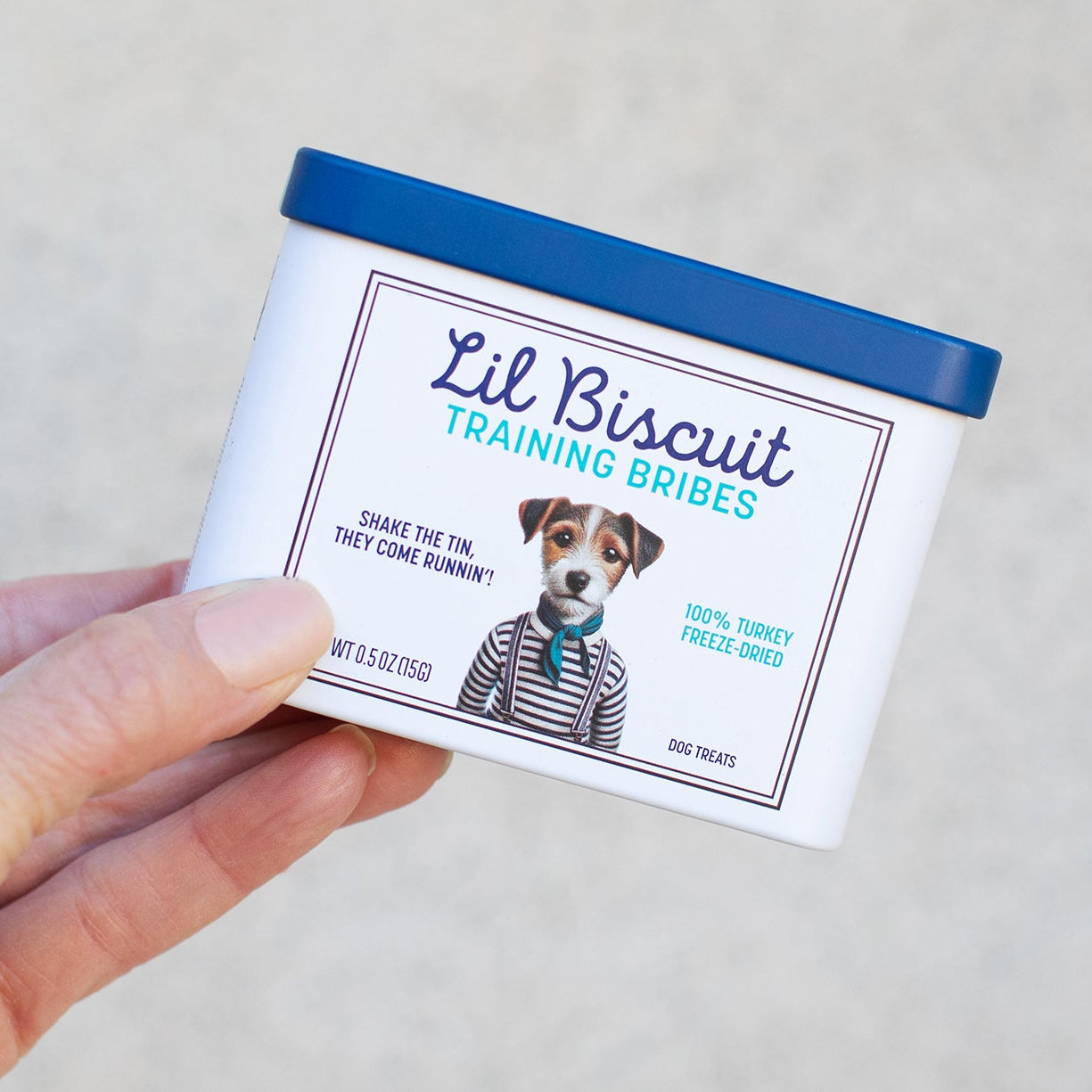 We obsessively tested shapes, sizes, textures, and ingredients to create clean, USA-made training treats that dogs truly crave — paired with a one-handed, shakeable tin designed for recall, rewards, and everyday training.