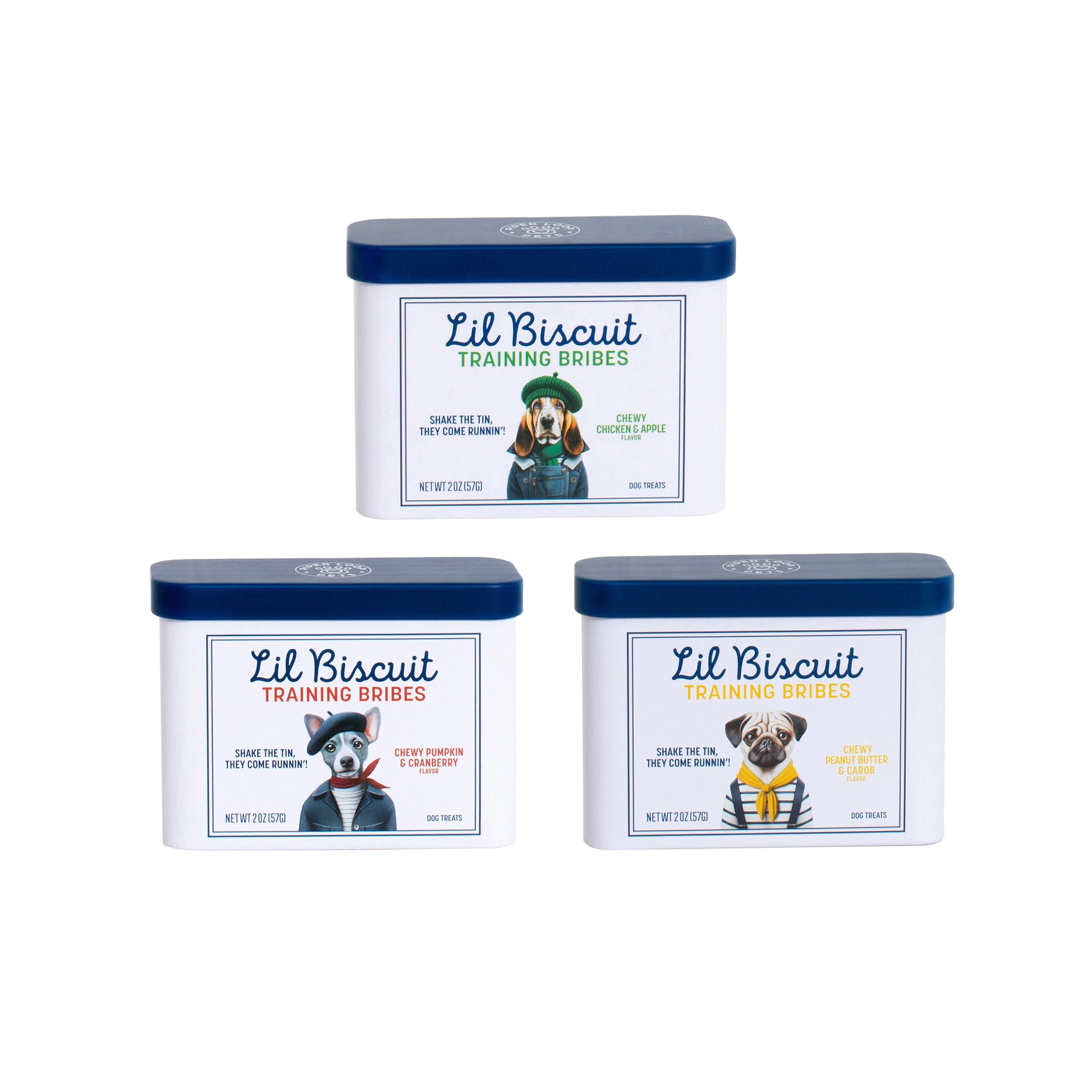 Not every dog loves the same flavor—and not every moment calls for the same reward. This wholesome Trio Bundle celebrates variety with three naturally-formulated soft and chewy treats. Each flavor lives in its own signature tin, designed to be rotated through your training practice and displayed with intention. Discover what resonates with your dog. Keep the tins because they're worth treasuring.