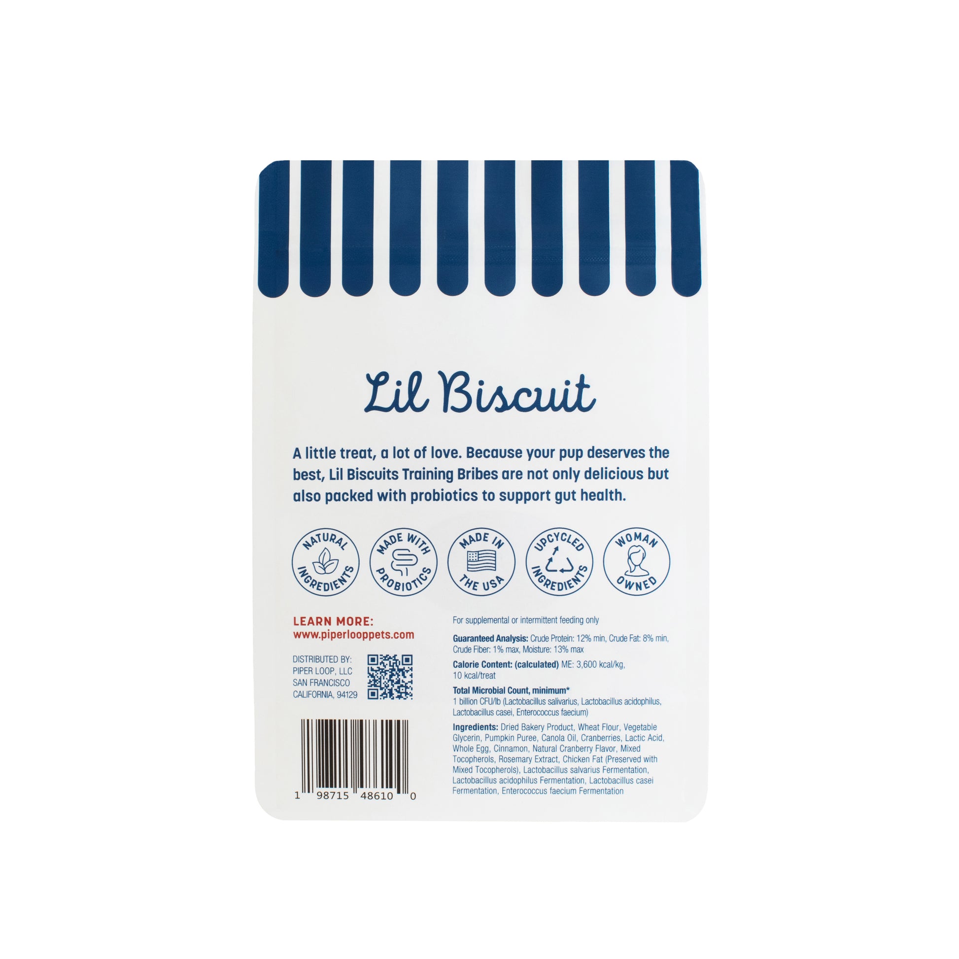 Baked with love, just for pets. Our soft and chewy snacks are crafted from natural ingredients and infused with probiotics to support happy tummies. Made in the USA in a family-owned bakery that first perfected recipes for people, these wholesome treats are now specially made for your four-legged friend. They’re easy to break apart so you can customize the perfect portion for your pup. Delicious, healthy, and tail-wag approved.