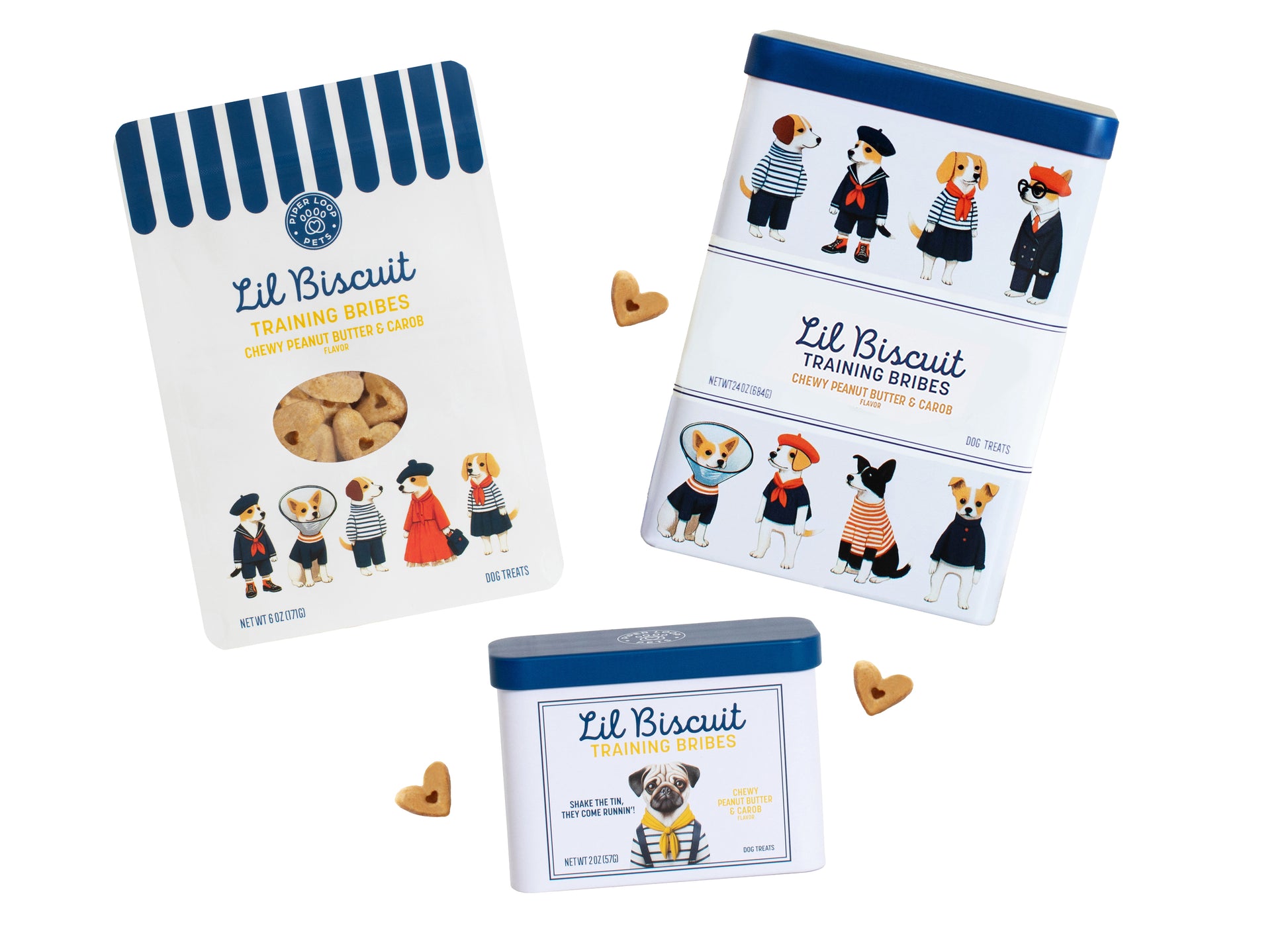Get all three essentials in one very giftable bundle: On-the-go training tin, decorative tin, and refill pouch.